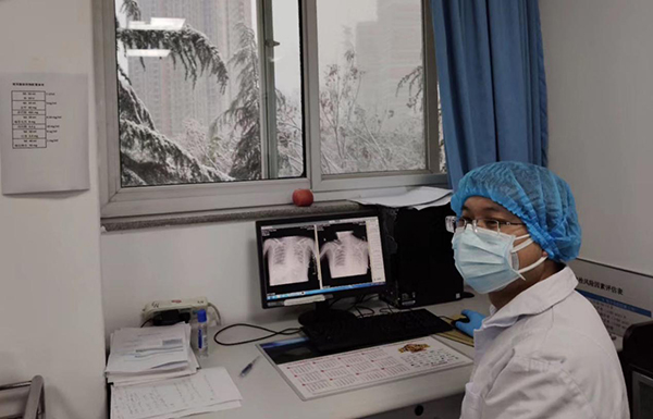 图为程克斌医生在查看分析病人的胸片。新华网发