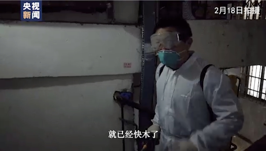 视频:武汉Vlog丨背40斤消毒水爬9层楼 体验武汉社区网格员的一天