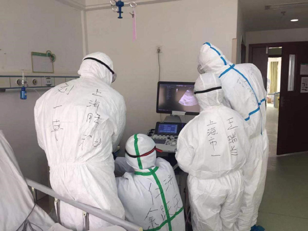 上海市第一人民医院急诊危重病科主任王瑞兰(右二)与同伴奋战在抗“疫”一线。 新华网发