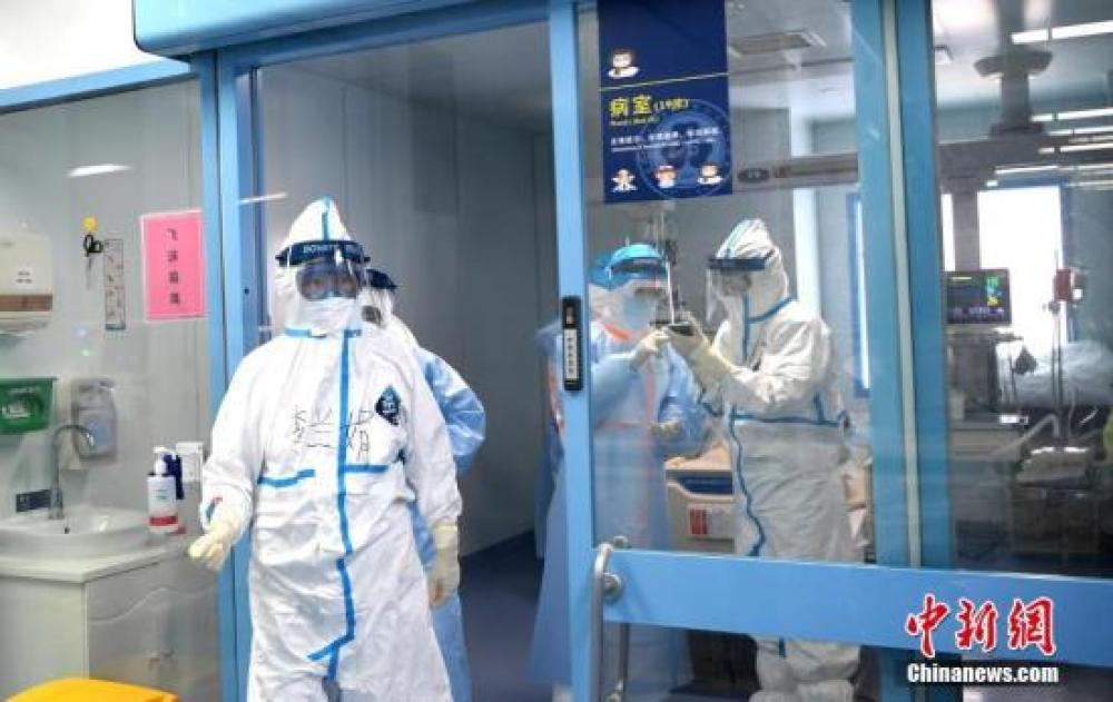 2月20日,中国工程院院士、国家卫健委高级别专家组成员李兰娟在武汉大学人民医院东院重症ICU病房查房,了解新冠肺炎重症患者治疗情况。图为李兰娟院士走进更衣室前。中新社记者 安源 摄