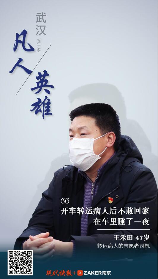 新冠肺炎疫情发生后,武汉市民用自己的行动,诠释了“英雄城市”的含义。黄鹤楼公园职工王禾田是一名志愿者司机,每天开着由面包车改装的“救护车”,往返于社区和医院之间,接转新冠肺炎患者,把他们送到方舱或是定点医院。