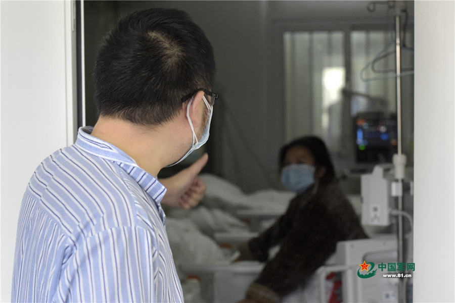 住院期间,万先生为其他患者加油鼓劲。中国军网记者范显海 摄