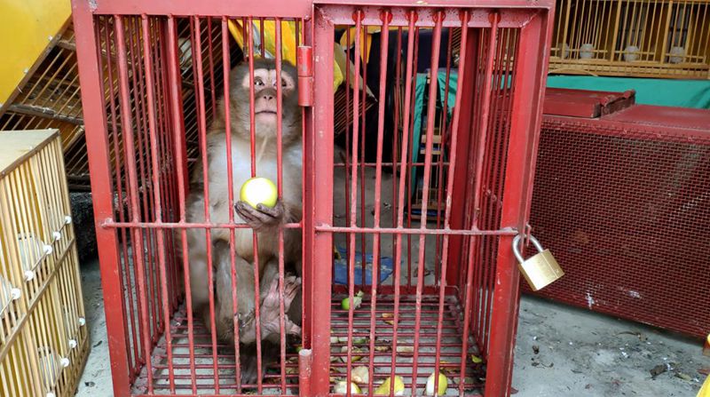 2月18日,文山州丘北县森林公安局民警在深入辖区村寨开展野生动物保护及疫情防控知识宣传过程中,解救了一只猴子,涉案嫌疑人被依法立案调查。经查,嫌疑人何某2016年2月在南盘江捕鱼时,发现湍急的江水中有一只猴子正在奋力游泳企图上岸,看起来已经体力不支。何某利用手中的捕鱼网将猴子捕获上岸后,将猴子带回家中饲养至被民警查获。