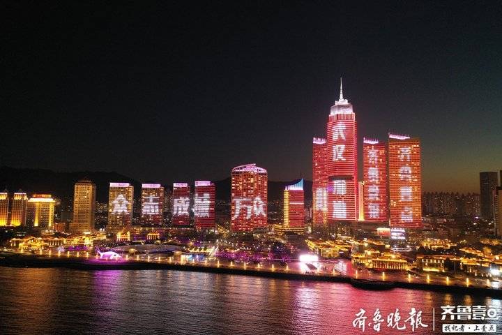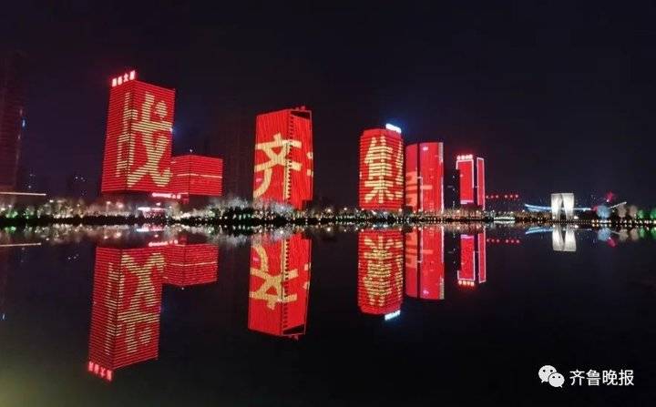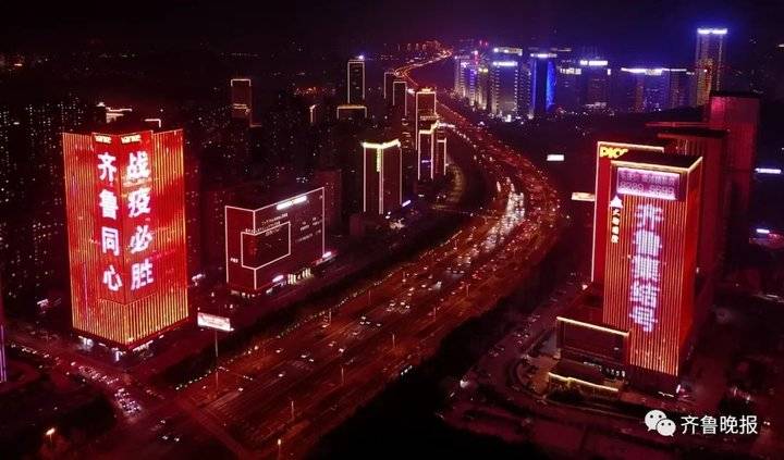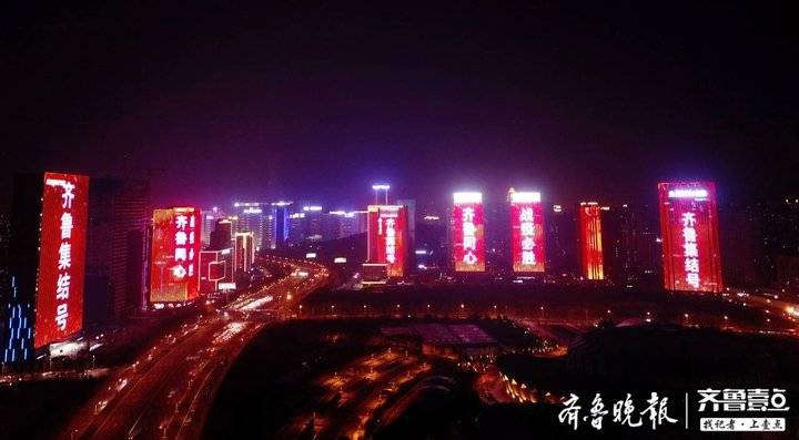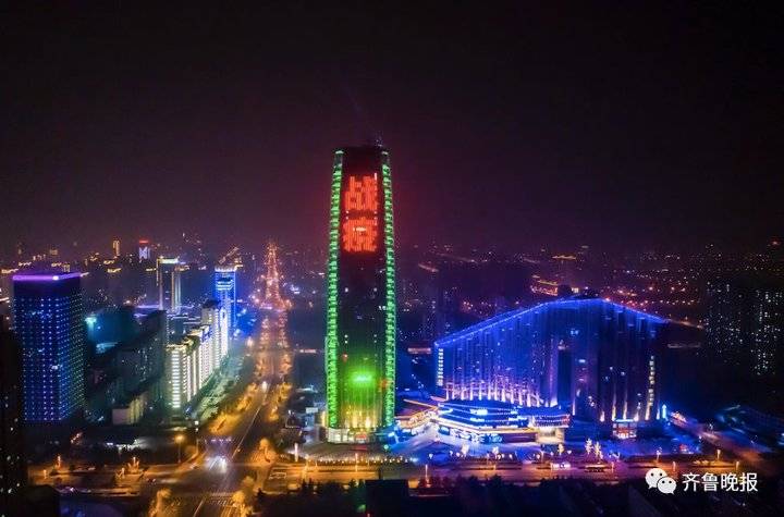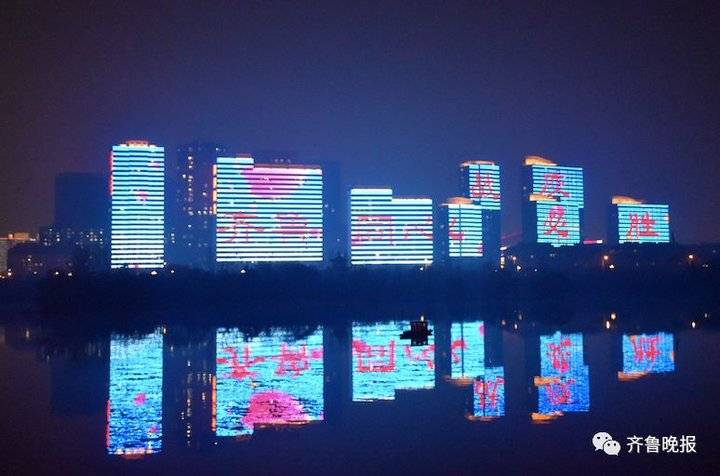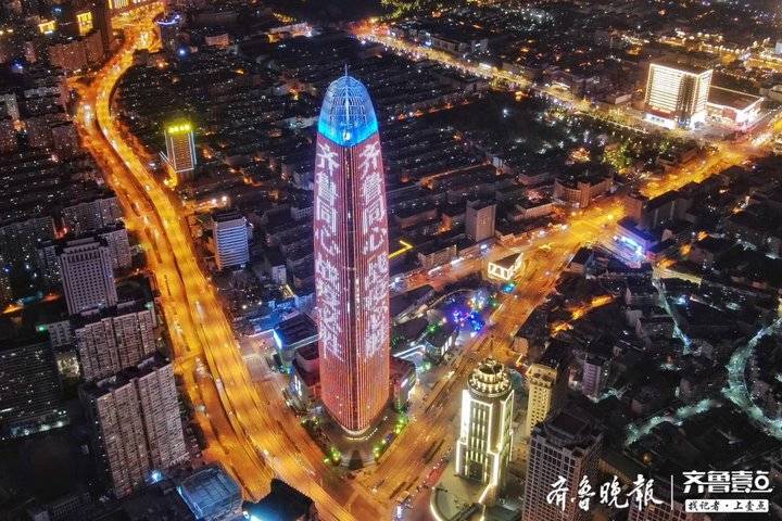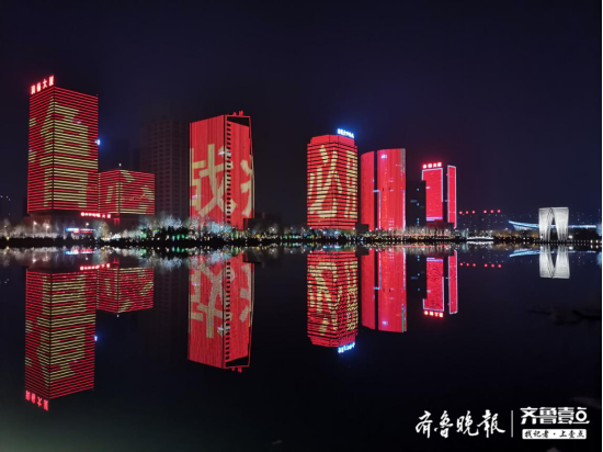 2月22日19时整至20时整,山东十六市的各大地标建筑在同一时间一起璀璨点亮。