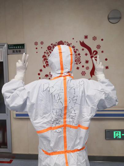 屠应超收到侯思聪发来的穿上防护服的照片。受访者供图