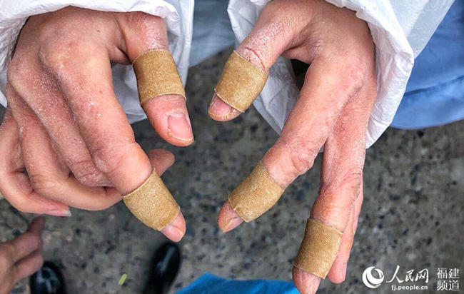 “我每天只能通过视频和妈妈聊天。”谢小燕每天早出晚归,母子俩很难见上一面。曾元博说,因为妈妈每天上下班都要进行严格消毒,双手已经被干裂出一道道血口。“妈妈的手已经干裂得不成样子了,一使劲就会流血,真让我们心疼。”