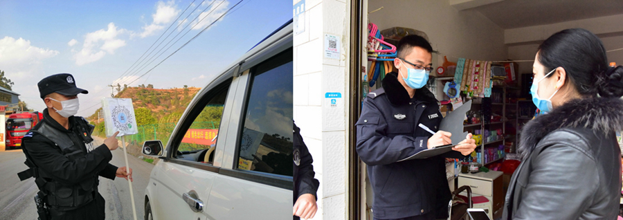 左图为正在辖区疫情防控卡点值守的大儿子王麒沣;右图为摸排辖区人员活动轨迹的小儿子王杰晖。王春艳摄