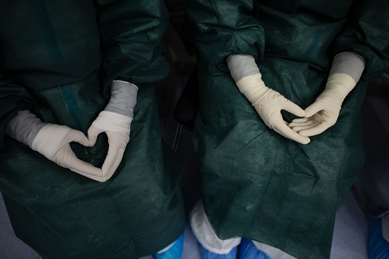 有医生的手势是心型,仿佛是在祈祷和祝福。