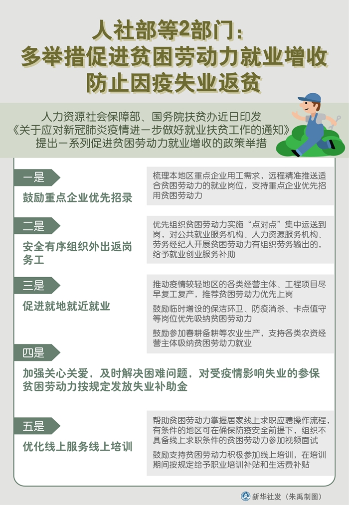 新华社北京2月25日电(记者王优玲)人力资源社会保障部、国务院扶贫办近日印发《关于应对新冠肺炎疫情进一步做好就业扶贫工作的通知》,提出一系列促进贫困劳动力就业增收的政策举措。