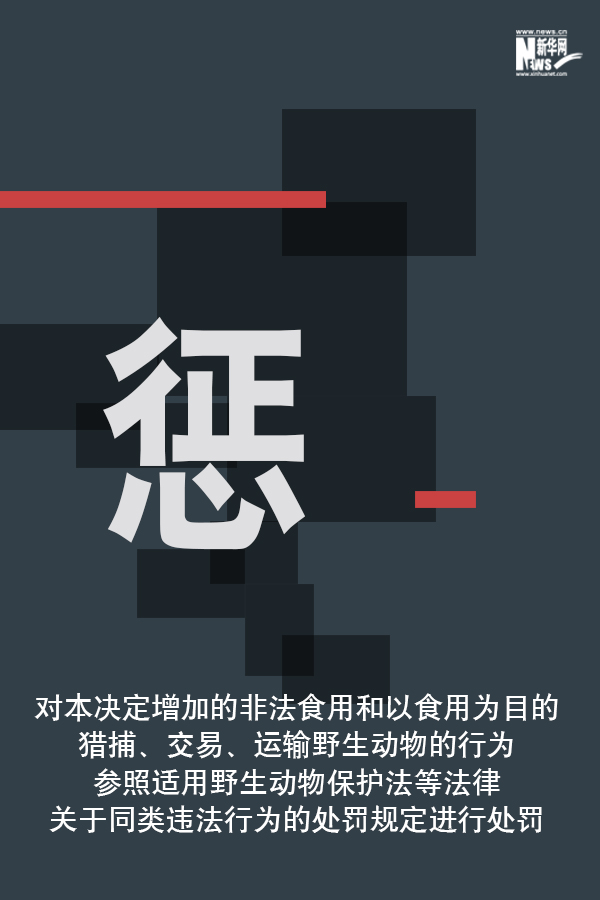 编辑: 张庆水 设计: 于倩 2020年02月25日 17:15:23 来源: 新华网2月24日,十三届全国人大常委会第十六次会议表决通过关于全面禁止非法野生动物交易、革除滥食野生动物陋习、切实保障人民群众生命健康安全的决定。