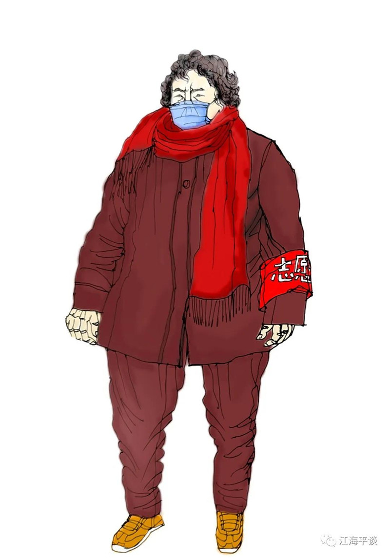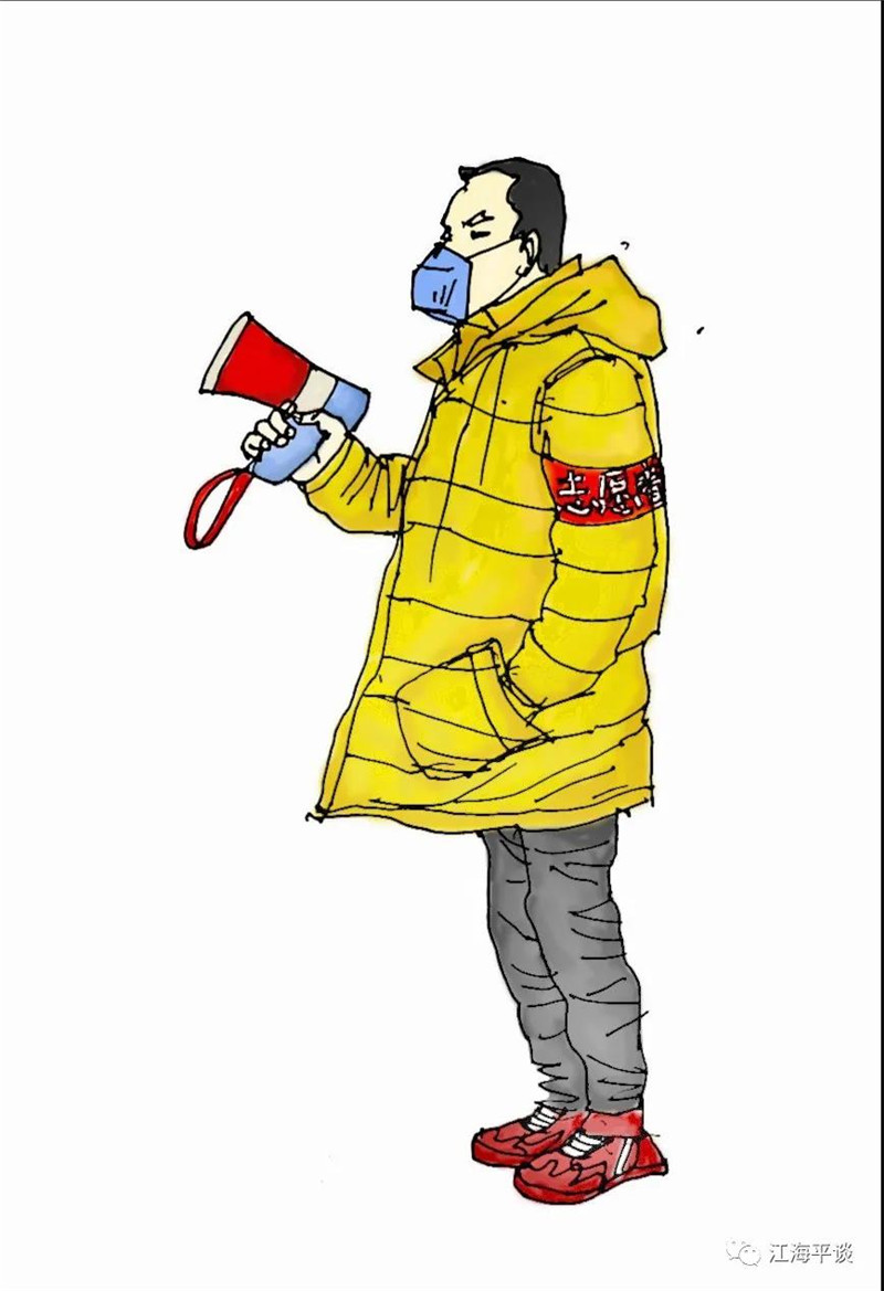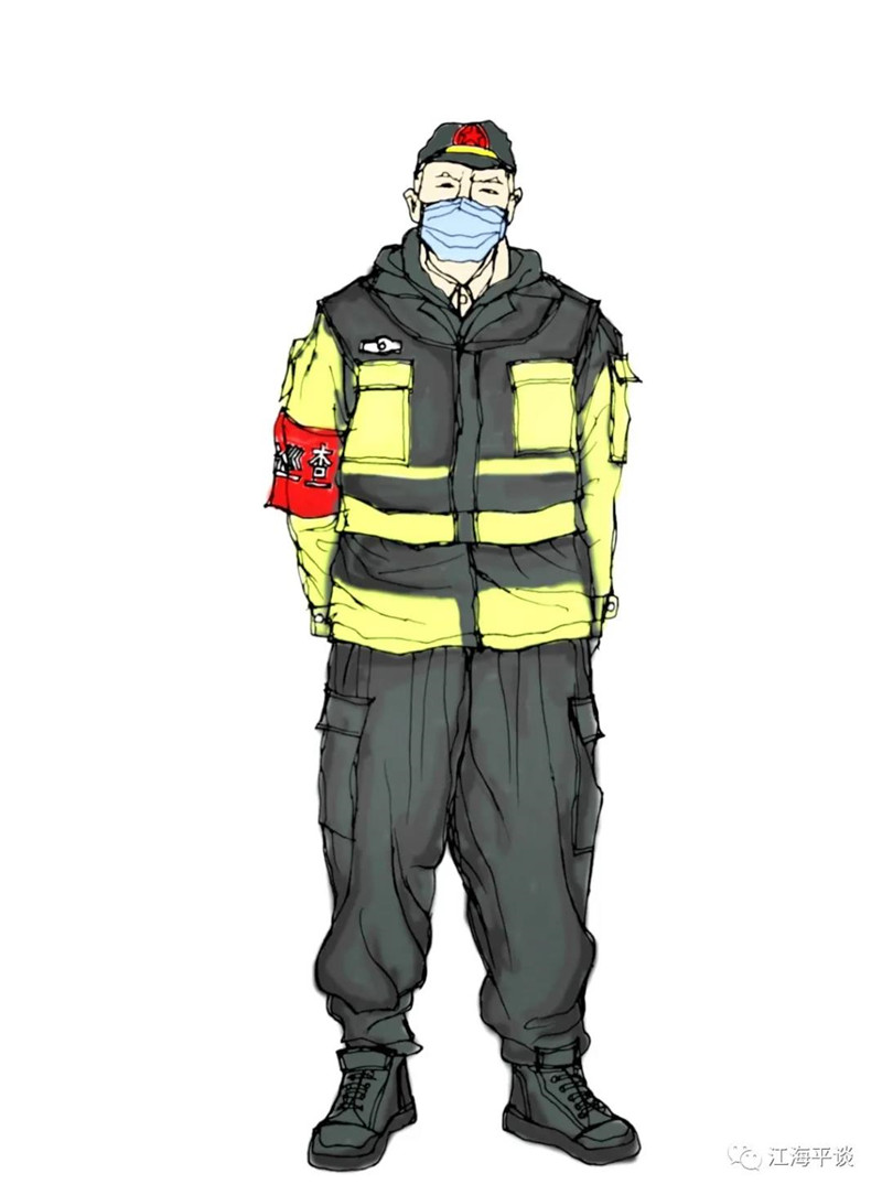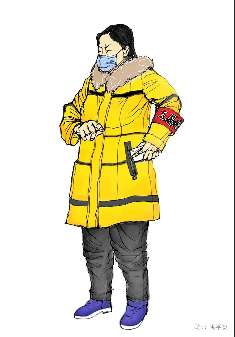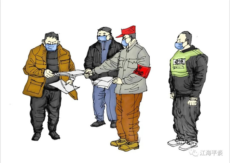 我用速写的形式,把自己每天看到听到的最动人的故事或场景记录下来,组成了一幅幅“防控抗疫”的群英图谱,特别是那些奋战在一线的广大医务工作者以及在街头巷尾,社区民宅忘我工作、无私奉献的街道干部和志愿者是我描绘的主要对象。虽然,他们都是普普通通的人,但他们都做出了不平凡的事。他们是这个时代真正的英雄,也是这个时代最可爱的人!