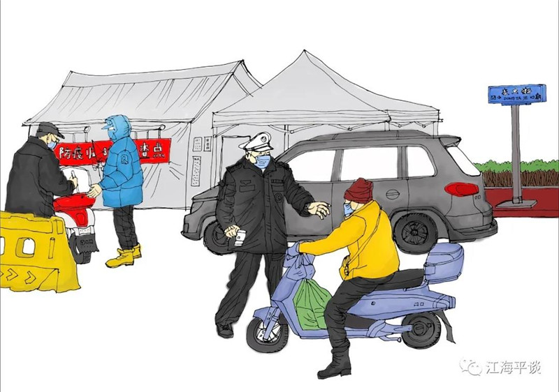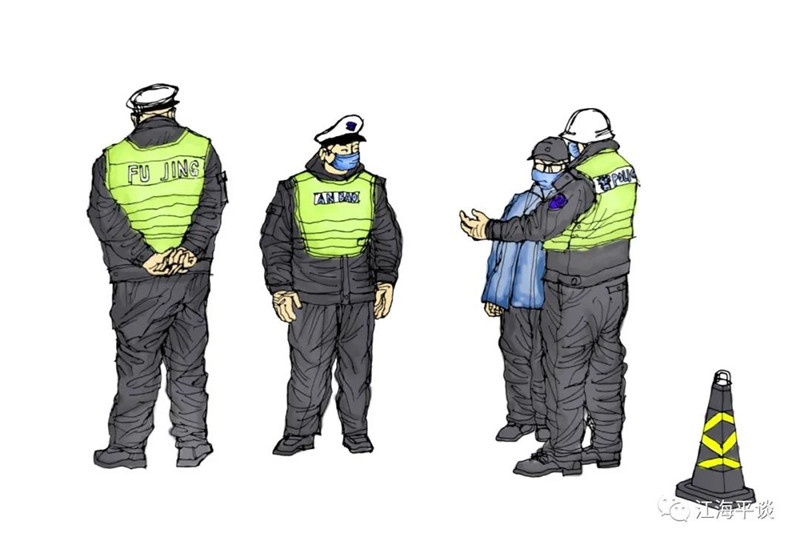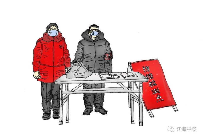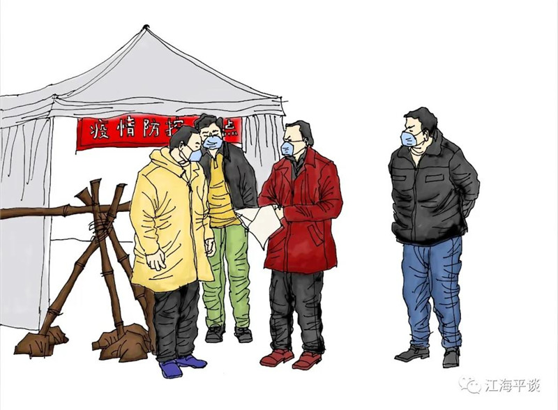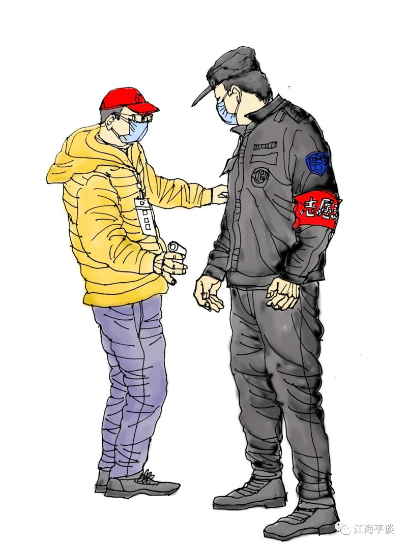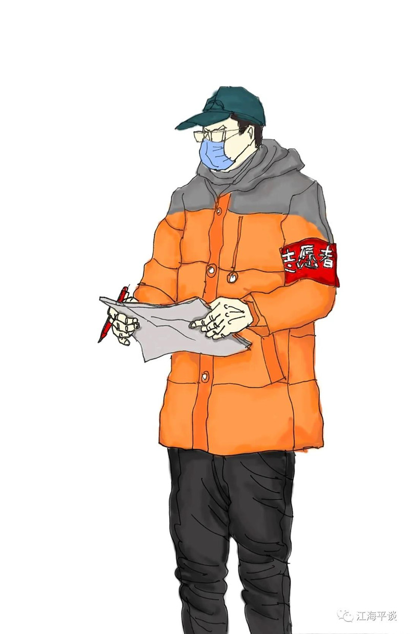 我用速写的形式,把自己每天看到听到的最动人的故事或场景记录下来,组成了一幅幅“防控抗疫”的群英图谱,特别是那些奋战在一线的广大医务工作者以及在街头巷尾,社区民宅忘我工作、无私奉献的街道干部和志愿者是我描绘的主要对象。虽然,他们都是普普通通的人,但他们都做出了不平凡的事。他们是这个时代真正的英雄,也是这个时代最可爱的人!