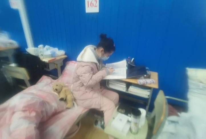 隔壁床的姐姐主动带她熟悉环境,一位叔叔教她连接WiFi上网课,看到她学习,病友们会自觉降低音量……巧巧说:“这里的气氛很好,他们让我觉得我被世界保护着”