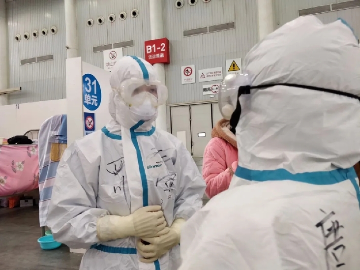 “注意检查防护服是否密封完整。”每一名进舱的医务人员都要接受两次检查,确保任何部位都没有暴露在空气中。戴上护目镜,我的视线有些模糊。刘婷说:“几个小时之后,眼前的一切都是花的。”