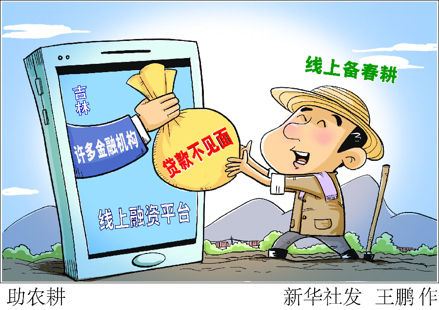 漫画:助农耕 一边是为了疫情防控尽量少出门,一边是农时不等人,急需贷款流转土地、购买农资,如此“两难”怎么解?在吉林省,许多金融机构建设了线上融资平台,农民足不出户就能用手机办理贷款。 新华社发 王鹏 作