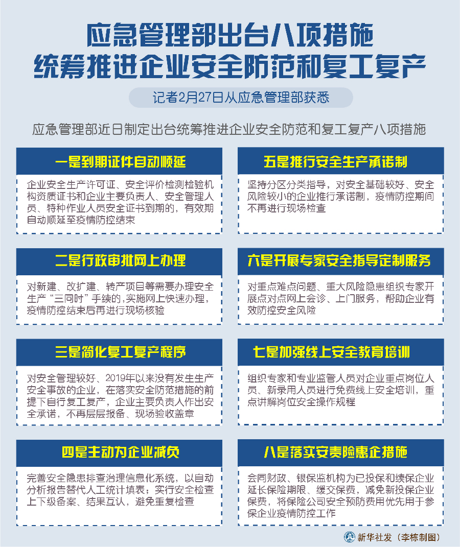 图表:应急管理部出台八项措施 统筹推进企业安全防范和复工复产 新华社发 李栋 制图