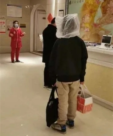两点多,留观点突然来了一位疑似感染者,拎着一点简单的行李,头上只罩着一层塑料袋,没有其他防护装备。戴建国主动上前,带他办理手续。