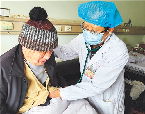 除了奔赴一线参与新冠肺炎患者救治,在指挥中心参与全省重症病人会诊,杜义斌坚持做好本职工作。图为杜义斌在云南省中医医院为住院患者检查身体。 曹松 摄