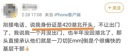一些地方所谓的“大数据报告”,听上去仅是查到了辖区内哪些人身份证是以“42”开头,而不是这个人近期到底去没去过湖北。如果缺少法治思维、现代化治理思维,今天可以因为新冠病毒“误伤”众多湖北籍人士,以后就可能因为其他事件让另一个群体感到“寒心”。