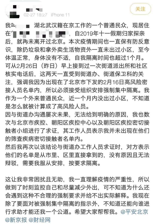 无论是网络曝光的案例,还是记者身边人亲历的尴尬,都有一个共同点,即以身份证作为是否隔离、劝返的依据。而一些地方所谓的“大数据报告”,听上去仅是查到了辖区内哪些人身份证是以“42”开头,而不是这个人近期到底去没去过湖北。这也难怪有人调侃:“最新研究表明,新冠病毒能通过身份证号传染?”