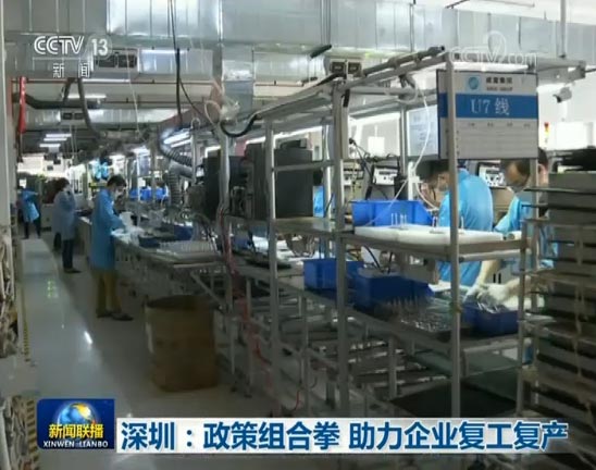 这是位于深圳市宝安区的一家国家级高新技术企业,企业从大年初三逐步恢复生产以来,当地政府通过调配物资、减免厂房租金、发放岗位补贴招聘新人等多项措施,帮助企业渡过难关。