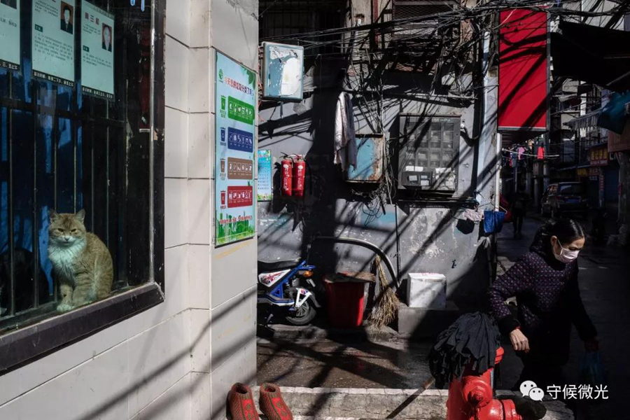 2月16日,湖北省武汉市,民生社区花楼街,趁着晴天,不少小区的居民都走出家门,或是采购物资,或是晒晒太阳。中国青年报 李隽辉/摄