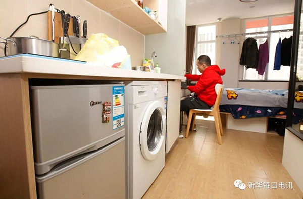 某长租公寓内,租客李苗在自己的房间内吃早饭。新华社记者谭慧婷 摄
