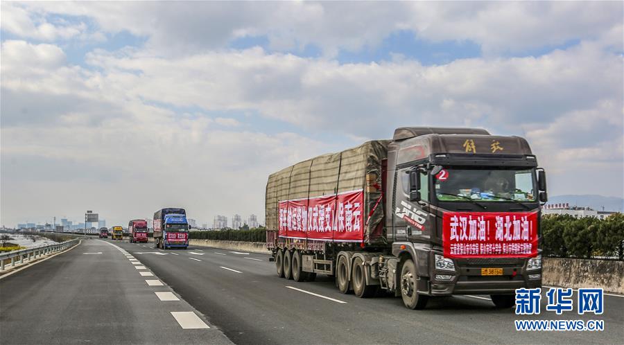 云南保山支援武汉爱心物资运输车队从保山出发(2月14日摄)。 新华社发(陶润福 摄)