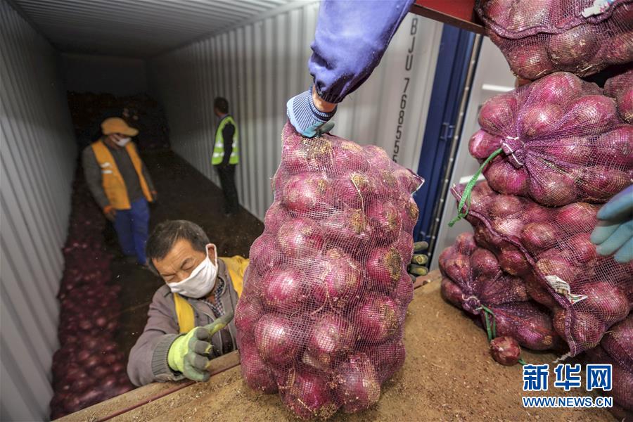 2月18日,工作人员在搬运农产品。当日22时,满载18个集装箱230吨云南绿色农产品的火车专列,从昆明市王家营西火车站出发,驶向湖北咸宁市,这是云南省支援湖北省抗击新冠肺炎疫情的捐赠农产品集装箱专列。 新华社发(杨航 摄)