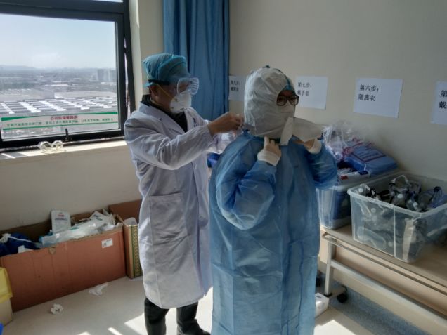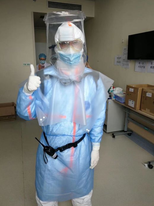 首先是防护装备。进隔离病房一般是三级防护,除穿戴防护服、隔离衣、护目镜、N95口罩、两层手套,两层脚套外,还要戴正压防护头套或一次性全面型防护头套。此外,头套还带有新风过滤系统。整套防护装备,凌肯在老师的帮助下,花了半个小时才穿上。穿戴完毕,凌肯整个人都很难受。护目镜起雾,头套风机发出巨大噪音,还有闷热,整个人都变得迟钝。