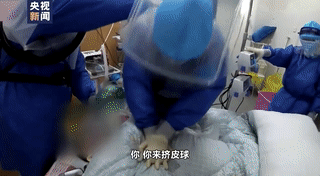 记者 刘笑宇:今天的抢救需要俯身在患者面前,直面其开放的气道,所以我们是在防护服的基础上又戴上了正压通气头套,可以在近距离接触病人的时候进行有效防护。