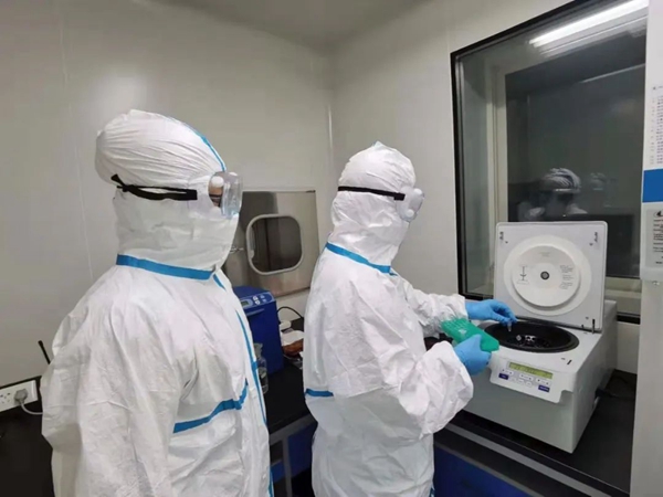 天津市河西区疾控中心核酸检测实验室工作人员在病毒检测中进行核酸提取。新华社发