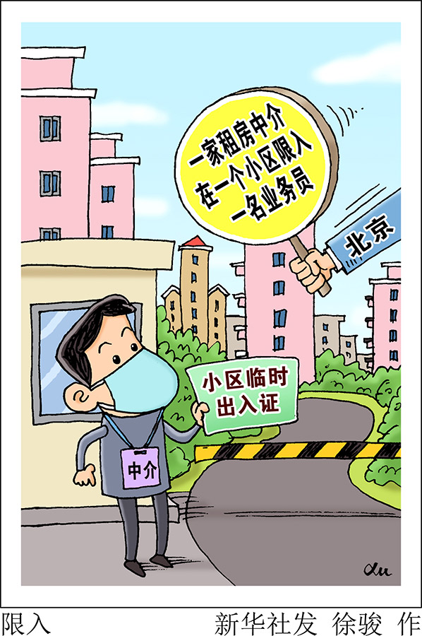 新华社北京3月15日电(记者李嘉瑞)北京市住房和城乡建设委员会15日发布通知,要求在确保疫情防控的基础上,允许经审查后的住房租赁企业从业人员进入社区开展业务。原则上,每个住房租赁企业在每小区只能上报一名从业人员,社区工作人员予以办理临时出入证,从业人员带看客户每天不得超过两次,每次只能带一名客户。