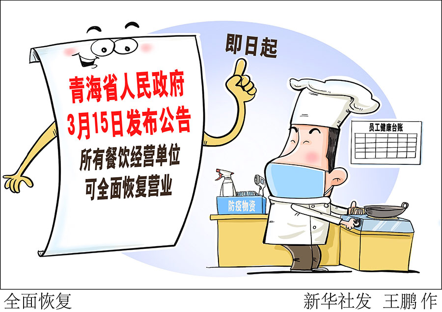新华社西宁3月16日电(记者央秀达珍)青海省人民政府15日发布公告称,全省所有餐饮经营单位(含酒店、餐馆、早餐店、夜宵店等),即日起可全面恢复营业。