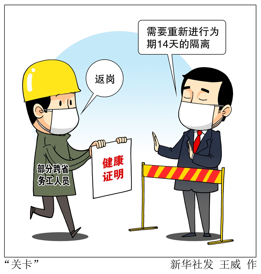 目前,一些地方正在推动“点对点、一站式”输送返岗,为务工人员的流动提供了及时帮助,但在一些地方,也存在务工人员的流动面临需要提交的材料繁多、手续繁杂、申报困难等问题。部分来自低风险区、拥有“健康码”,且进行了长时间居家隔离的务工人员,受限于“健康码”跨区域互认中存在的壁垒,返岗时还要一切“从头再来”,一定程度上也增加了务工成本。尤其是,有的地方还要求外来务工人员隔离期食宿费用自理,这让本已长时间没有经济收入来源的务工者更加难以承受。