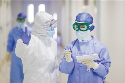 在疫区的医院里,护士需要承担病人所有的护理工作和病区保洁、消毒工作。例如输液、抽血、采集咽拭子、重症病人病情巡视观察、发口服药、发饭、垃圾打包、病房和仪器的消毒等等。为了节省防护服,我们总是坚持完成更多的工作。在工作中给病人扎留置针是最有挑战性的,部分患者血管条件不好,戴着两层手套的护士们,摸不到病人的细小静脉,没有手感。护目镜起了雾,看不见也摸不着。怎么办呢?我们就眯着眼睛仔细看,深呼吸,让自己更平静地触摸病人血管走向,每扎完一针,防护服下的汗水就滴答滴答直流。在为四十多个患者依次输完液,我早已是大汗淋漓,头重脚轻。虽然工作量大,但我们从不叫苦,每一次巡视病房,都会轻声地问询患者的身体状况,向这些没有家属陪伴的患者传达我们的心意:请放心!我在病区,随叫随到!