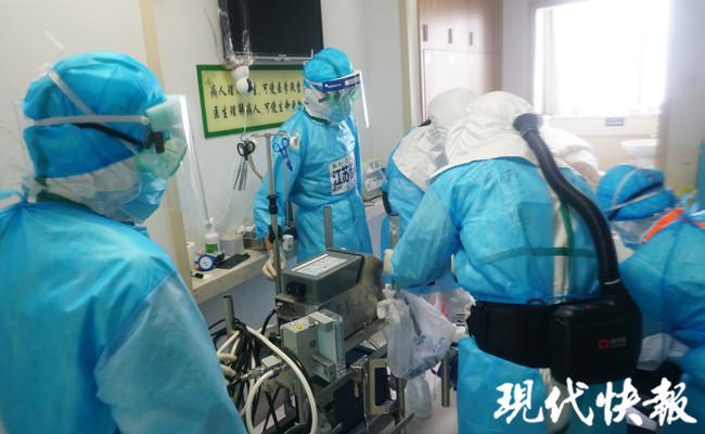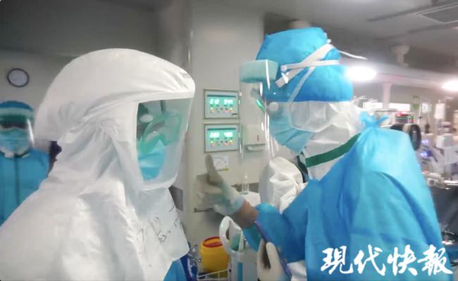 现代快报记者穿好防护服,与医护人员一同进入重症病房。
