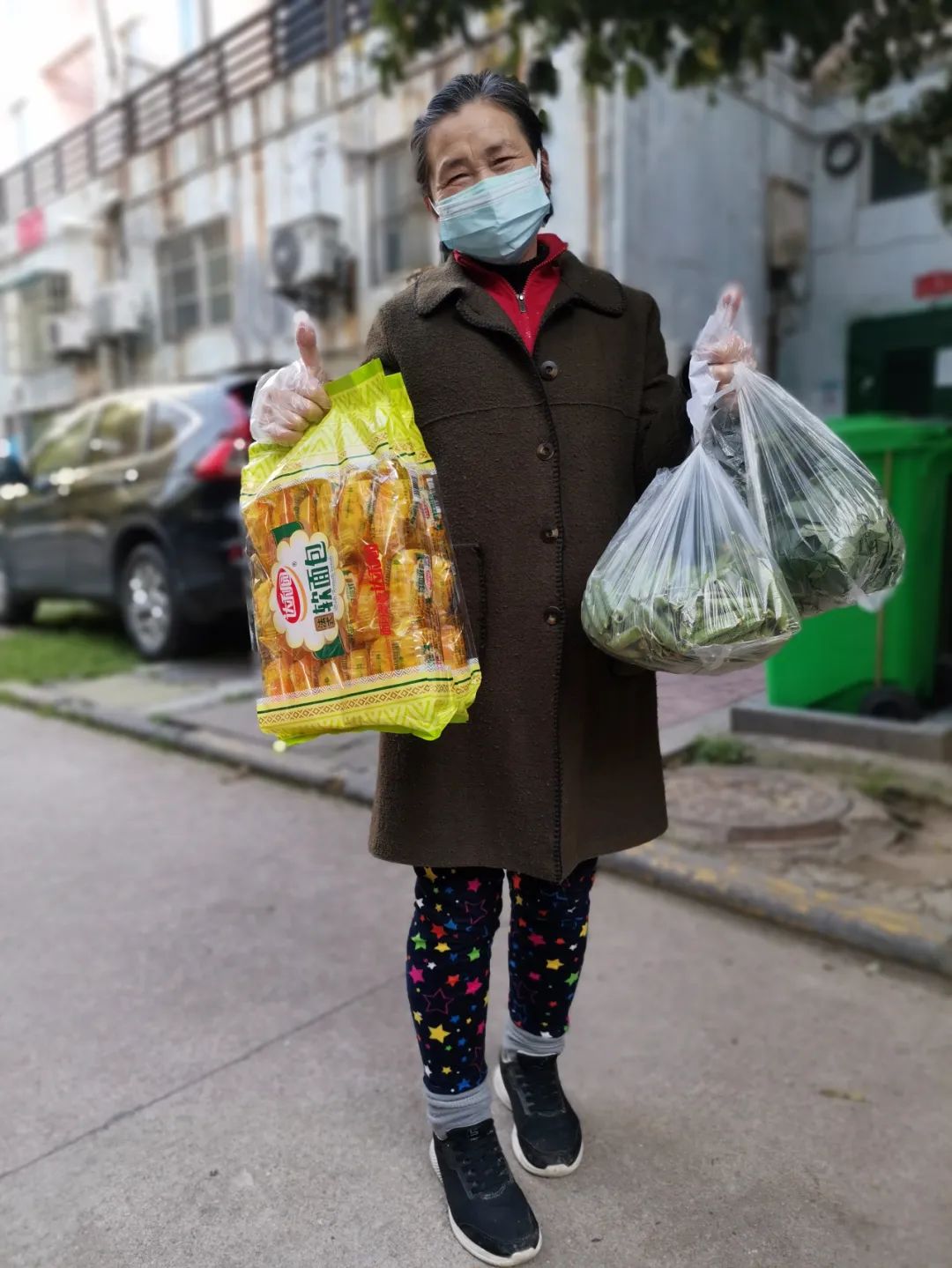 居民:非常高兴,我们在家没有白待,我们很高兴,对你们志愿者,我们鞠个躬,谢谢你们……