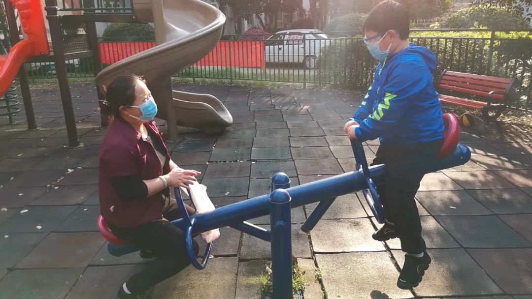 虽然开心,但是居民的防疫措施可一点都没有松懈,带着孩子出来玩儿跷跷板的妈妈还随身携带了酒精喷雾做消杀。