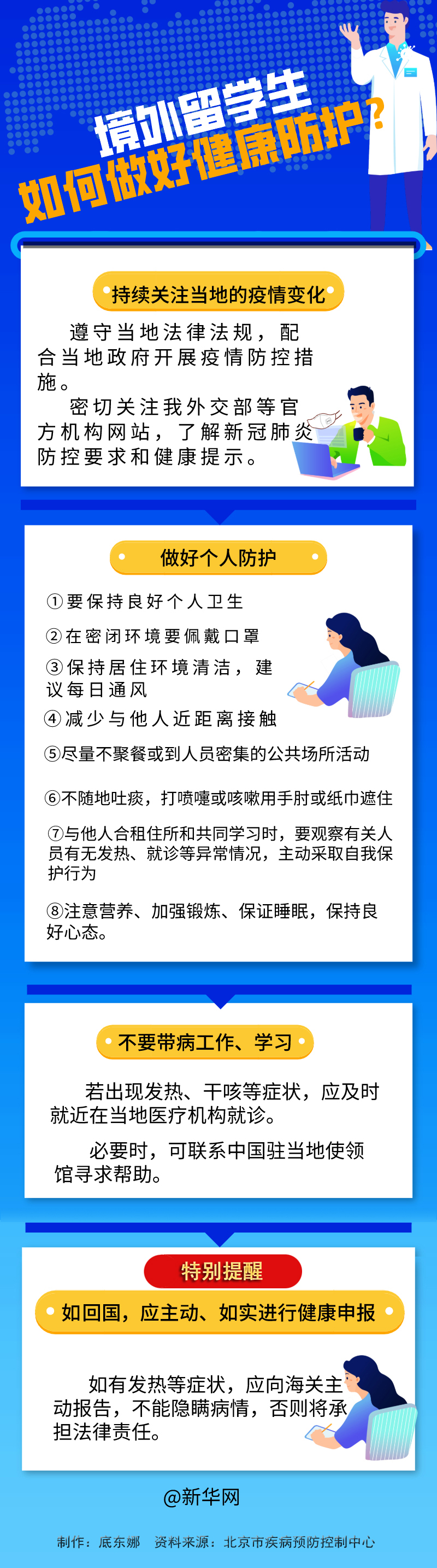 目前,国内疫情防控形势持续向好,但其他一些国家的疫情形势却越来越严峻,这给在国外读书深造的留学生群体造成了很多生活上的困难和心里上的压力。身处异乡,远离家人,疫情之下,饮食起居都有诸多不便。那么广大留学生该如何做好自身的健康防护?