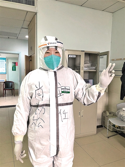 肖劲松准备进入隔离病房疏导病人 受访者供图