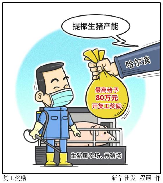 新华社哈尔滨3月28日电(记者强勇)记者从哈尔滨市政府了解到,为提振疫情影响下的生猪产能,今年哈尔滨市将完成360万头生猪养殖任务,并对日均屠宰量500头以上的生猪定点屠宰厂给予最高80万元一次性开复工奖励。