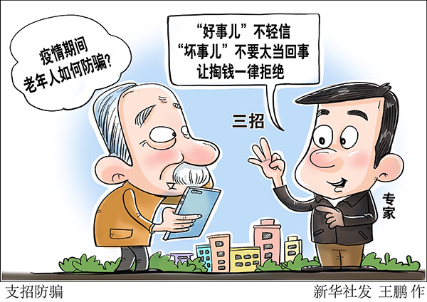 中国老龄科学研究中心副主任党俊武认为,不法分子利用老年人害怕感染的焦虑情绪以及对病毒相关信息的不了解,其诈骗技术根本上并没有更新。他提醒老年人及其家人牢记三句话:“好事儿”不轻信;“坏事儿”不要太当回事;让掏钱一律拒绝。