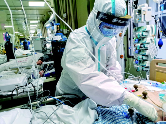 ▲在武汉协和江北医院重症监护室,鞍钢集团总医院护士、辽宁驰援湖北医疗队队员金钰在照顾病人(2月5日摄)。新华社发