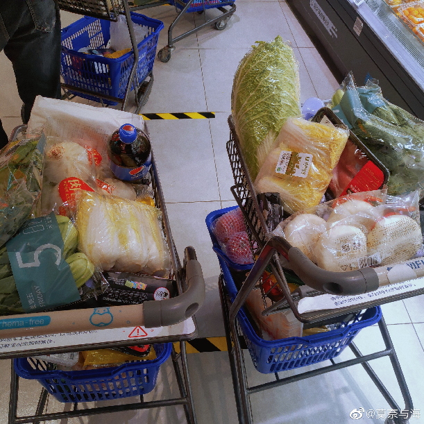 楼威辰在超市采购物资,常常一天就要花掉两三千元。