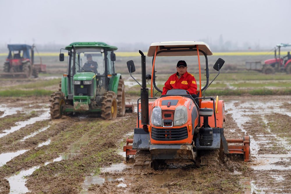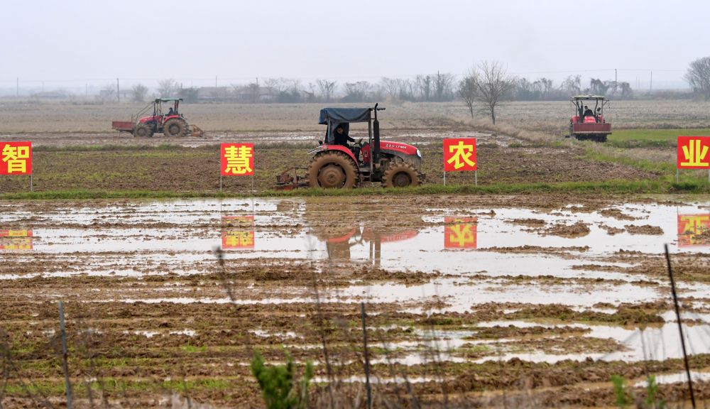 春雨下,几台旋耕机在江西省南昌县蒋巷镇大田现代农业基地里来回作业。与其他农机略显不同的是,这些旋耕机的机身都装有一个小小的智能终端和一个摄像头。