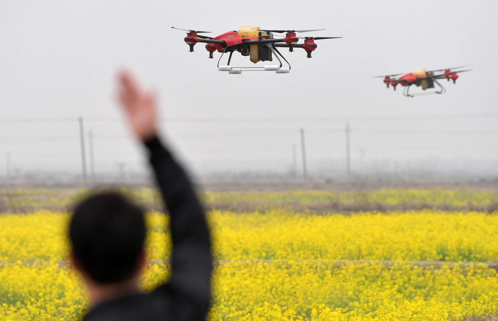 春耕时节,记者在农村走访看到,智能手机、植保无人机、遥控无人插秧机等成为田间地头大显身手的“新农具”。