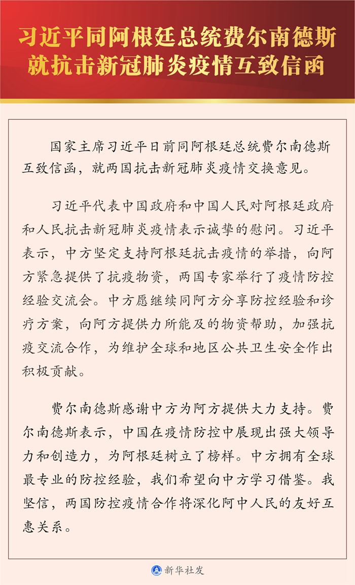 习近平同阿根廷总统费尔南德斯就抗击新冠肺炎疫情互致信函