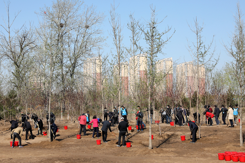 国家林业和草原局副局长张永利(左一)在义务植树活动现场。 吴兆喆 摄