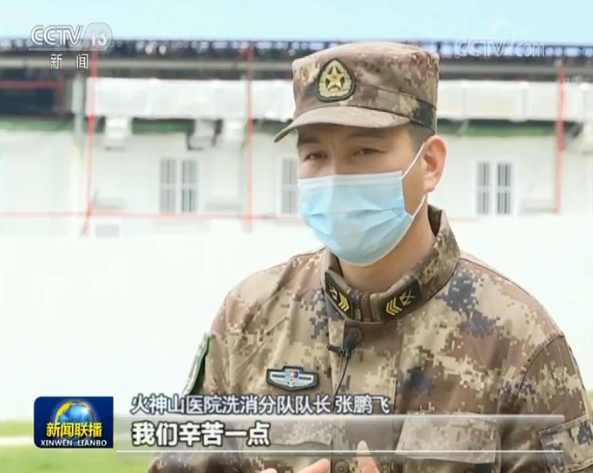 火神山医院洗消分队队长 张鹏飞:我们要保证医务人员安全,我们要保证病区安全。我们认真一点,我们负责一点,我们辛苦一点,他们就会少一丝隐患。